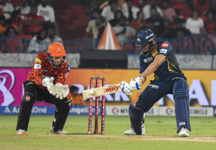 Hyderabad: Gujarat Titans’ batter Shubman Gill plays a shot during the Indian Premier League (IPL) 2025 match between Sunrisers Hyderabad and Gujarat Titans, at Rajiv Gandhi International Cricket Stadium, in Hyderabad, Sunday, April 6, 2025. (PTI Photo)(PTI04_06_2025_000440B)