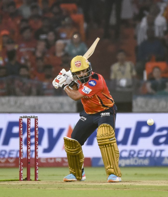 Hyderabad: Punjab Kings’ Prabhmsiran Singh plays a shot during an Indian Premier League (IPL) 2025 T20 cricket match between Sunrisers Hyderabad and Punjab Kings, at Rajiv Gandhi International Cricket Stadium, Uppal, in Hyderabad, Saturday, April 12, 2025. (PTI Photo) (PTI04_12_2025_000437B)