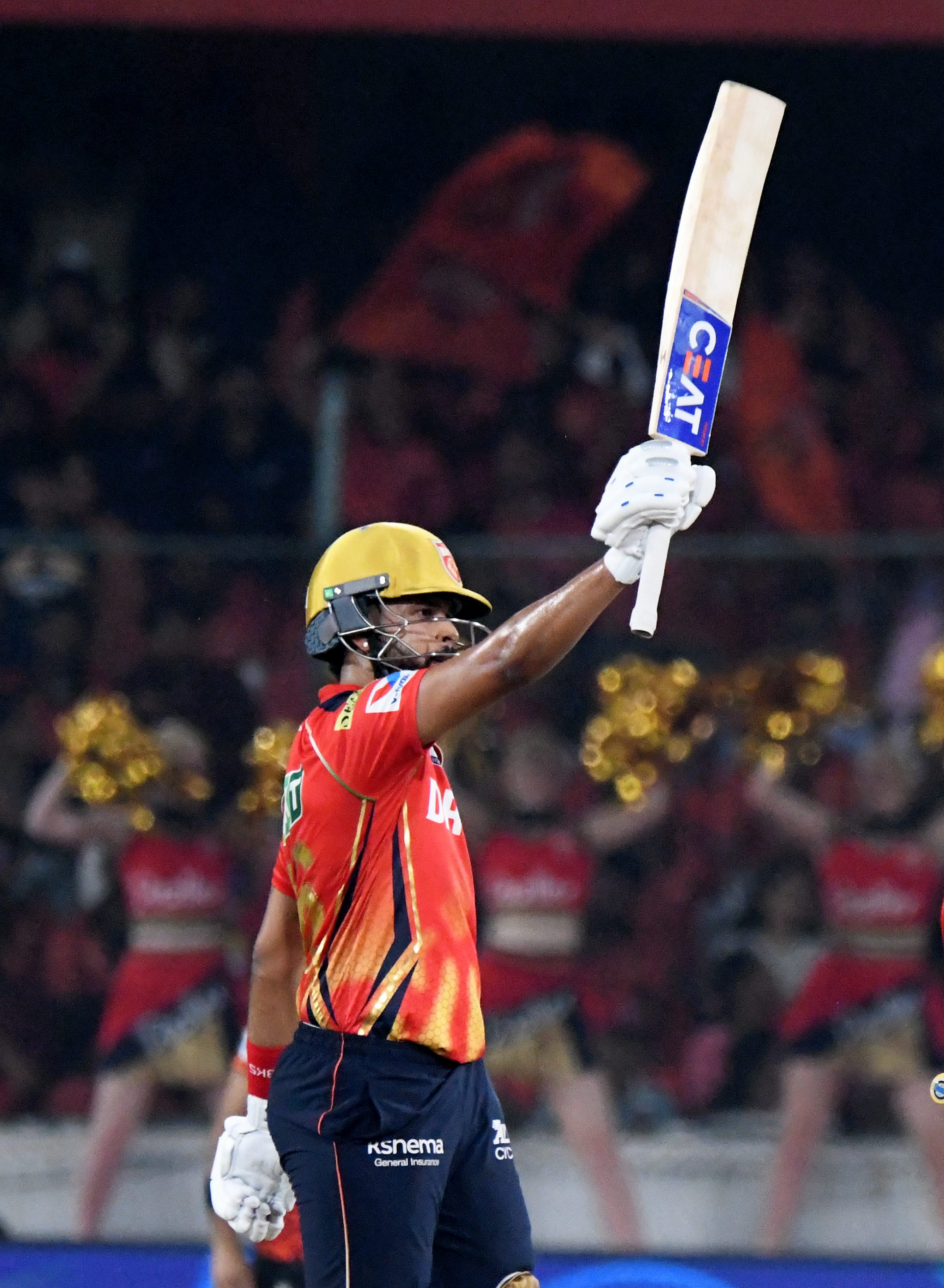 Hyderabad: Punjab Kings’ captai Shreyas Iyer celebrates his half century during an Indian Premier League (IPL) 2025 T20 cricket match between Sunrisers Hyderabad and Punjab Kings, at Rajiv Gandhi International Cricket Stadium, Uppal, in Hyderabad, Saturday, April 12, 2025. (PTI Photo) (PTI04_12_2025_000472B)