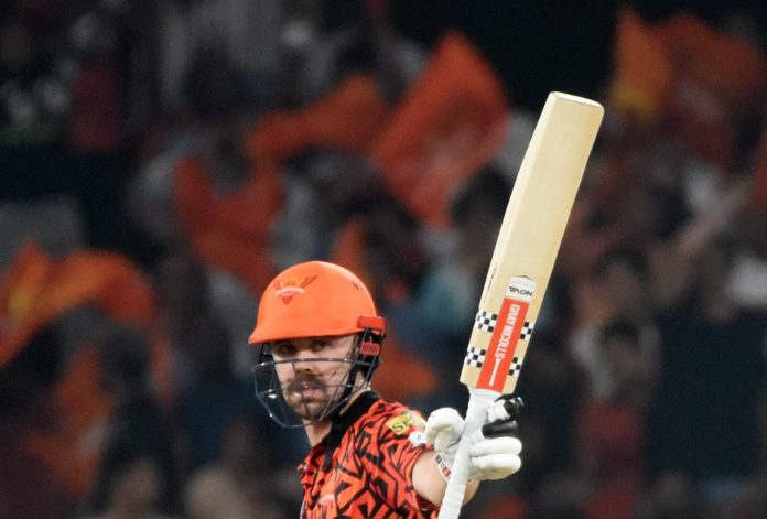 Hyderabad: Sunrisers Hyderabad’s Travis Head celebrates his half century during an Indian Premier League (IPL) 2025 T20 cricket match between Sunrisers Hyderabad and Punjab Kings, at Rajiv Gandhi International Cricket Stadium, Uppal, in Hyderabad, Saturday, April 12, 2025. (PTI Photo) (PTI04_12_2025_000542B)