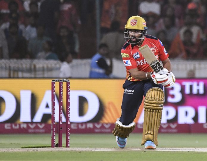 Hyderabad: Punjab Kings’ Prabhsimran Singh plays a shot during a practice session ahead of an Indian Premier League (IPL) 2025 T20 cricket match between Sunrisers Hyderabad and Punjab Kings, at Rajiv Gandhi International Cricket Stadium, Uppal, in Hyderabad, Saturday, April 12, 2025. (PTI Photo) (PTI04_12_2025_000410B)