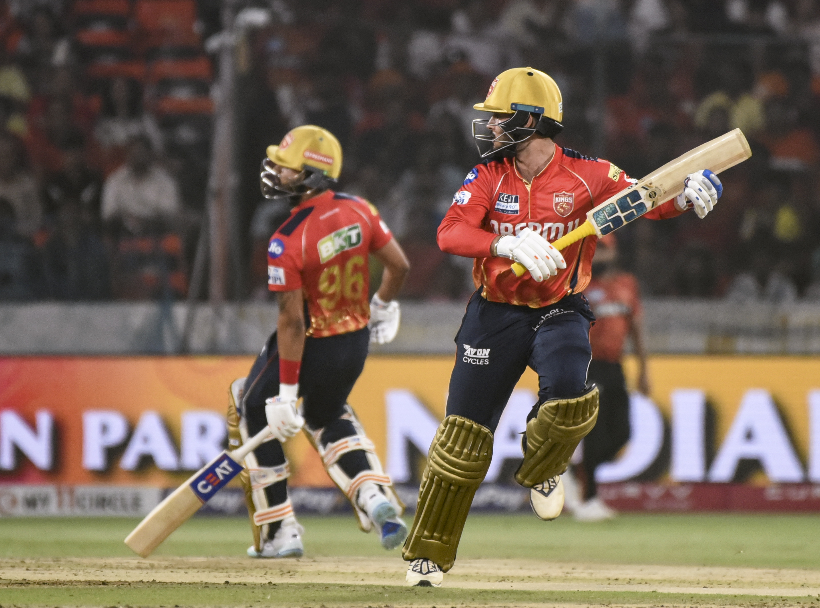 Hyderabad: Punjab Kings' captain Shreyas Iyer and Nehal Wadhera run between the wickets during an Indian Premier League (IPL) 2025 T20 cricket match between Sunrisers Hyderabad and Punjab Kings, at Rajiv Gandhi International Cricket Stadium, Uppal, in Hyderabad, Saturday, April 12, 2025. (PTI Photo) (PTI04_12_2025_000451B)