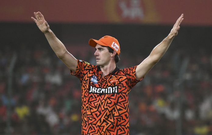 Hyderabad: Sunrisers Hyderabad’s captain Pat Cummins during an Indian Premier League (IPL) 2025 T20 cricket match between Sunrisers Hyderabad and Punjab Kings, at Rajiv Gandhi International Cricket Stadium, Uppal, in Hyderabad, Saturday, April 12, 2025. (PTI Photo) (PTI04_12_2025_000446B)