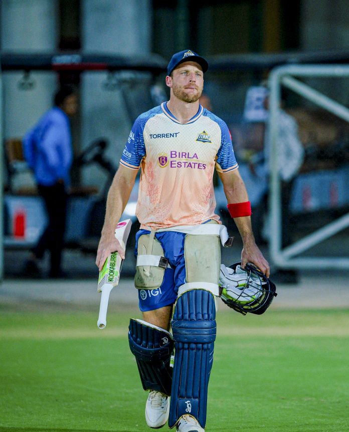 **EDS: THIRD PARTY IMAGE; TO GO WITH STORY** In this image received on March 28, 2026, Gujarat Titans’ Jos Buttler during a practice session ahead of an Indian Premier League (IPL) T20 cricket match, in Ahmedabad. (Handout via PTI Photo) (PTI03_28_2026_000196B)