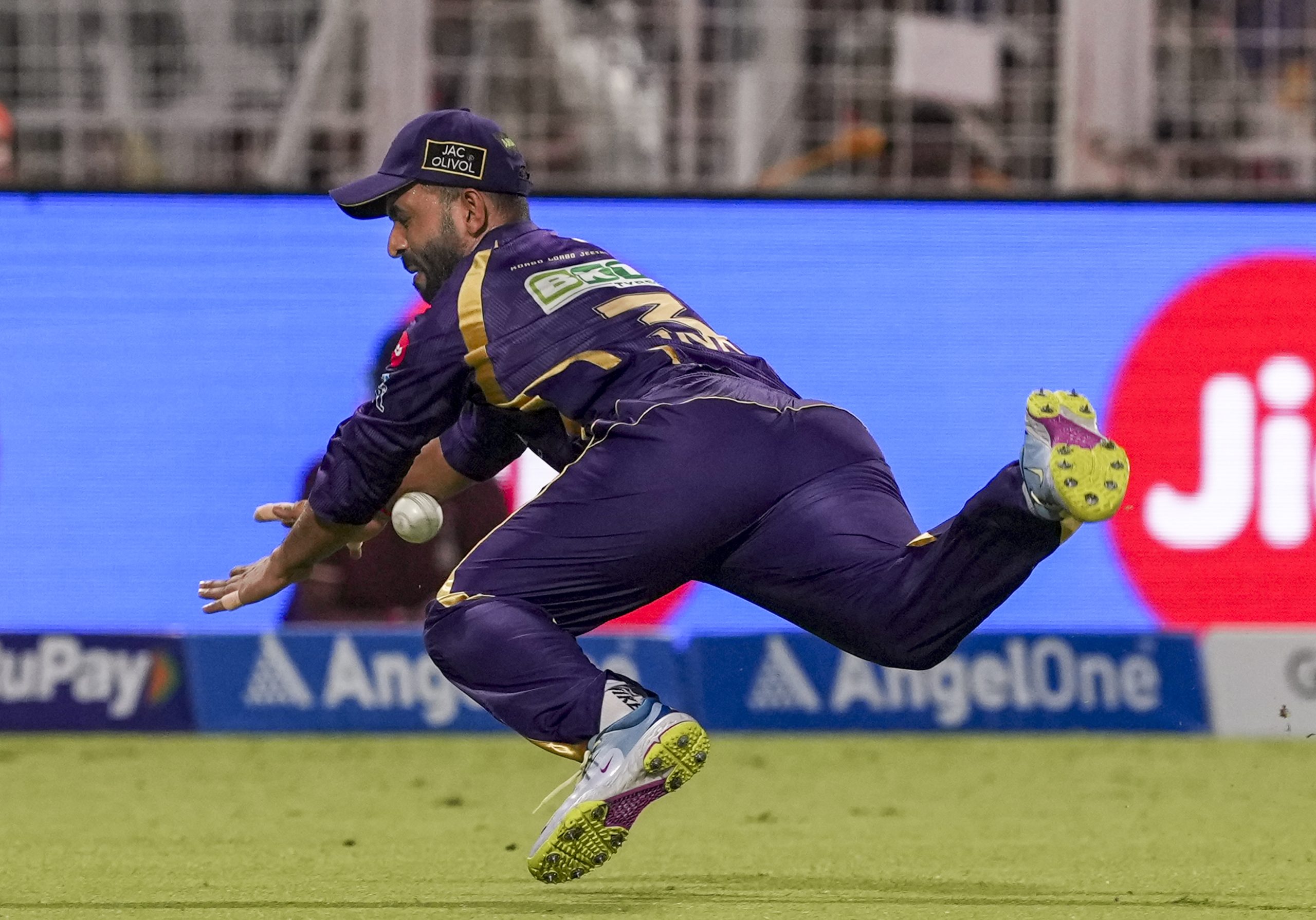 Kolkata: Kolkata Knight Riders’ captain Ajinkya Rahane attempts a catch during the Indian Premier League (IPL) 2026 cricket match between Kolkata Knight Riders and Sunrisers Hyderabad, at Eden Gardens in Kolkata, West Bengal, Thursday, April 2, 2026. (PTI Photo/Manvender Vashist Lav)(PTI04_02_2026_000337B)