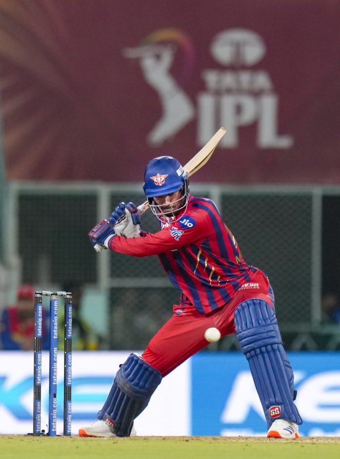 Lucknow: Lucknow Super Giants’ Mukul Choudhary plays a shot during the Indian Premier League (IPL) 2026 cricket match between Lucknow Super Giants and Delhi Capitals, at Ekana Stadium in Lucknow, Wednesday, April 1, 2026. (PTI Photo/Shahbaz Khan)(PTI04_01_2026_000490B)
