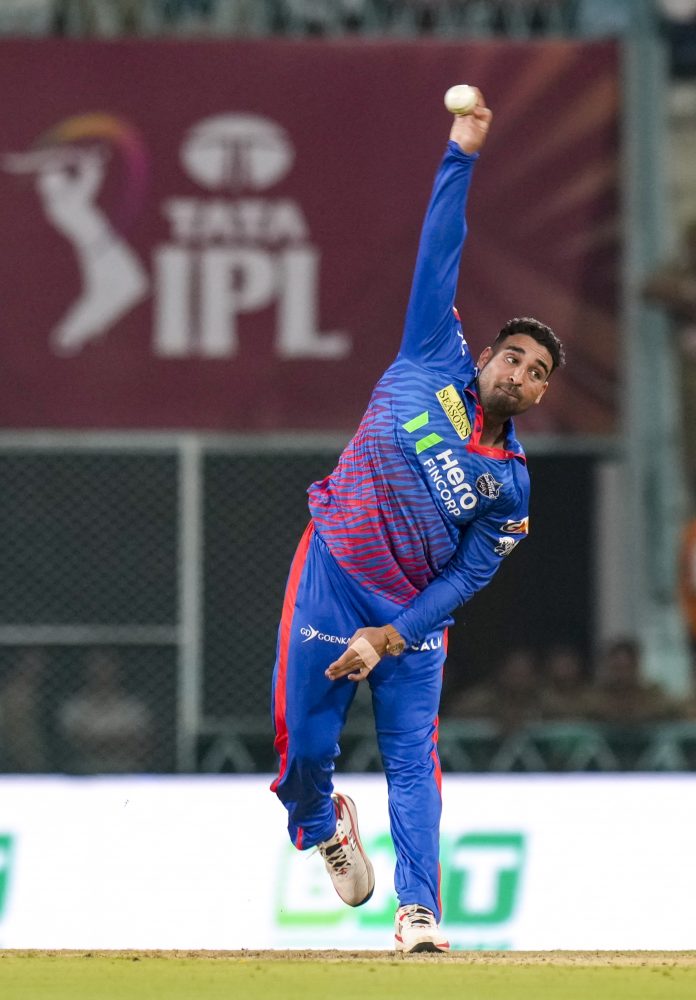 Lucknow: Delhi Capitals’ Vipraj Nigam bowls during the Indian Premier League (IPL) 2026 cricket match between Lucknow Super Giants and Delhi Capitals, at Ekana Stadium in Lucknow, Wednesday, April 1, 2026. (PTI Photo/Shahbaz Khan)(PTI04_01_2026_000496B)