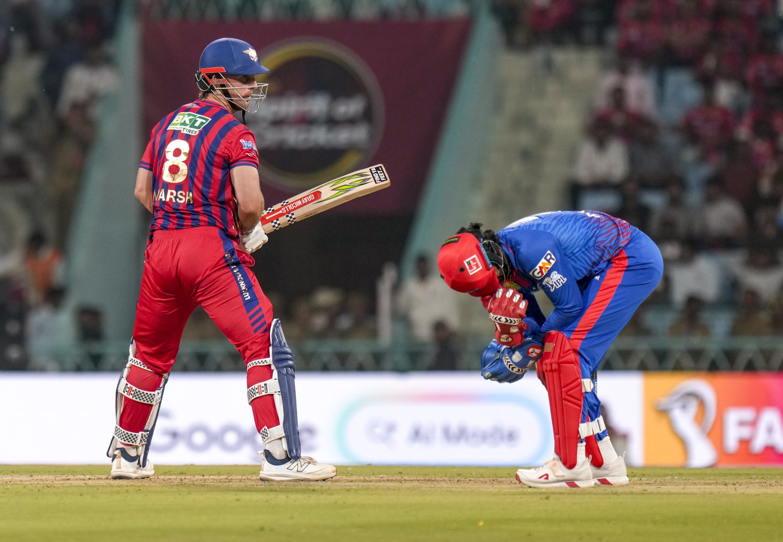 Lucknow: Lucknow Super Giants’ Mitchell Marsh, left, during the Indian Premier League (IPL) 2026 cricket match between Lucknow Super Giants and Delhi Capitals, at Ekana Stadium in Lucknow, Wednesday, April 1, 2026. (PTI Photo/Shahbaz Khan)(PTI04_01_2026_000440B)