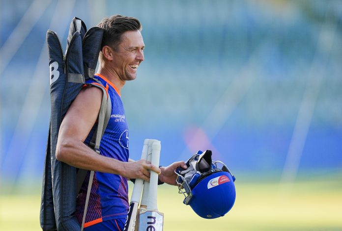 Mumbai: Mumbai Indians' Trent Boult during a practice session ahead of an Indian Premier League (IPL) 2026 T20 cricket match against Kolkata Knight Riders, at the Wankhede Stadium, in Mumbai, Maharashtra, Saturday, March 28, 2026. (PTI Photo/Kunal Patil) (PTI03_28_2026_000308B)