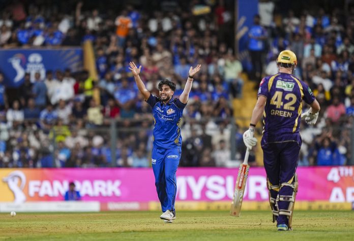 Mumbai: Mumbai Indians’ Mayank Markande makes an unsuccessful appeal during an Indian Premier League (IPL) 2026 T20 cricket match between Mumbai Indians and Kolkata Knight Riders, at the Wankhede Stadium, in Mumbai, Maharashtra, Sunday, March 29, 2026. (PTI Photo/Kunal Patil) (PTI03_29_2026_000335B)
