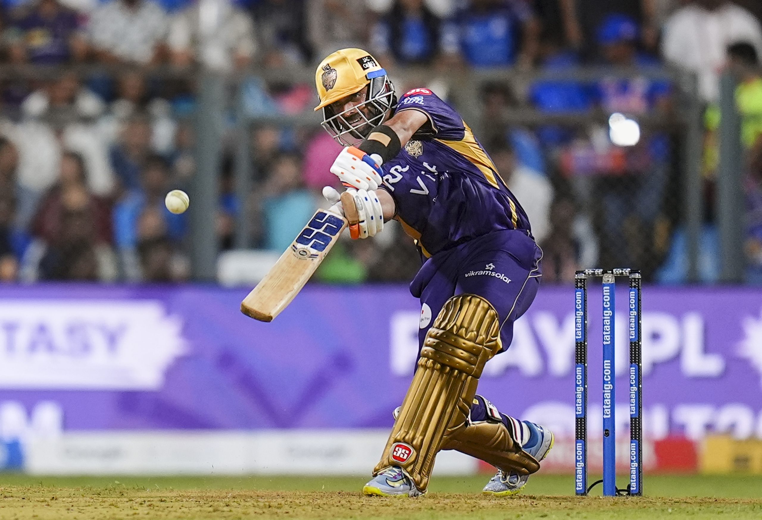 Mumbai: Kolkata Knight Riders’ captain Ajinkya Rahane plays a shot during an Indian Premier League (IPL) 2026 T20 cricket match between Mumbai Indians and Kolkata Knight Riders, at the Wankhede Stadium, in Mumbai, Maharashtra, Sunday, March 29, 2026. (PTI Photo/Kunal Patil) (PTI03_29_2026_000365B)