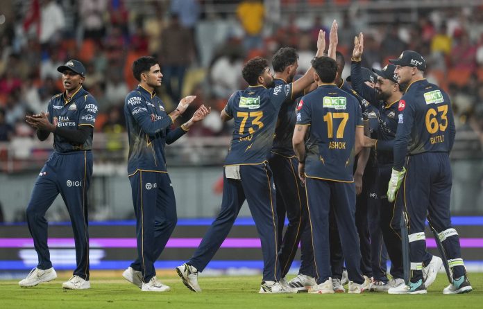 Mullanpur: Gujarat Titans’ players celebrate a wicket during an Indian Premier League (IPL) 2026 T20 cricket match between Punjab Kings and Gujarat Titans, in Mullanpur, Tuesday, March 31, 2026. (PTI Photo/Shiva Sharma) (PTI03_31_2026_000492B) *** Local Caption ***
