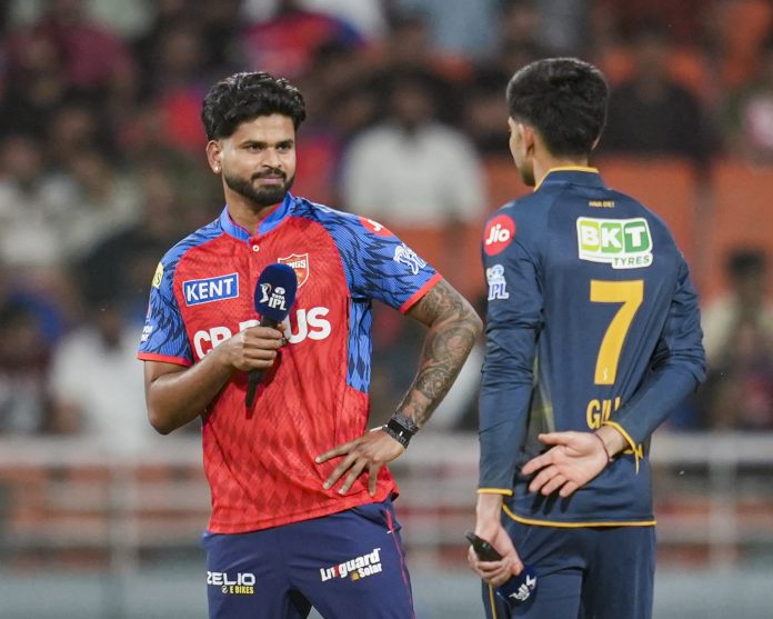 Mullanpur: Punjab Kings’ captain Shreyas Iyer, left, and Gujarat Titans’ Shubman Gill during the toss before an Indian Premier League (IPL) 2026 T20 cricket match between Punjab Kings and Gujarat Titans, in Mullanpur, Tuesday, March 31, 2026. (PTI Photo/Shiva Sharma) (PTI03_31_2026_000290B) *** Local Caption ***