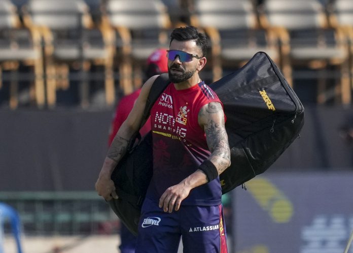 Bengaluru: Royal Challengers Bengaluru Virat Kohli during a practice session on the eve of the Indian Premier League (IPL) 2026 cricket match against Sunrisers Hyderabad, at M Chinnaswamy Stadium in Bengaluru, Karnataka, Friday, March 27, 2026. (PTI Photo)(PTI03_27_2026_000404B)