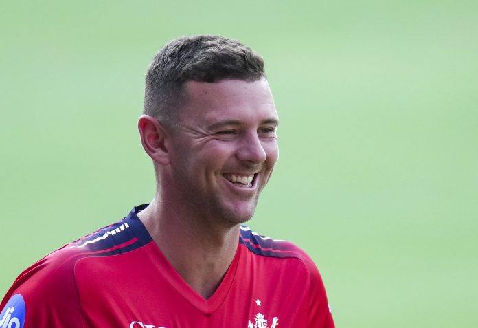 Bengaluru: Royal Challengers Bengaluru�s Josh Hazlewood during a practice session on the eve of the Indian Premier League (IPL) 2026 cricket match against Sunrisers Hyderabad, at M Chinnaswamy Stadium in Bengaluru, Karnataka, Friday, March 27, 2026. (PTI Photo/Shailendra Bhojak) (PTI03_27_2026_000424B)