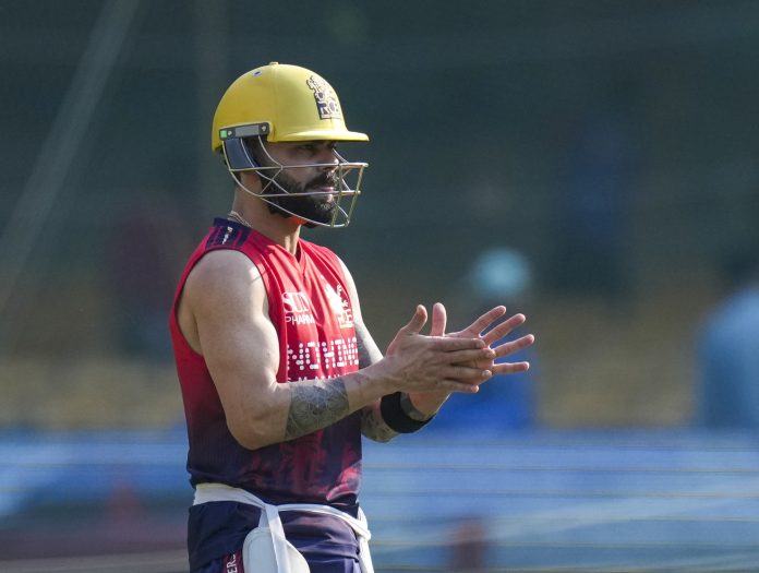 Bengaluru: Royal Challengers Bengaluru�s Virat Kohli during a practice session on the eve of the Indian Premier League (IPL) 2026 cricket match against Sunrisers Hyderabad, at M Chinnaswamy Stadium in Bengaluru, Karnataka, Friday, March 27, 2026. (PTI Photo/Shailendra Bhojak) (PTI03_27_2026_000418B)