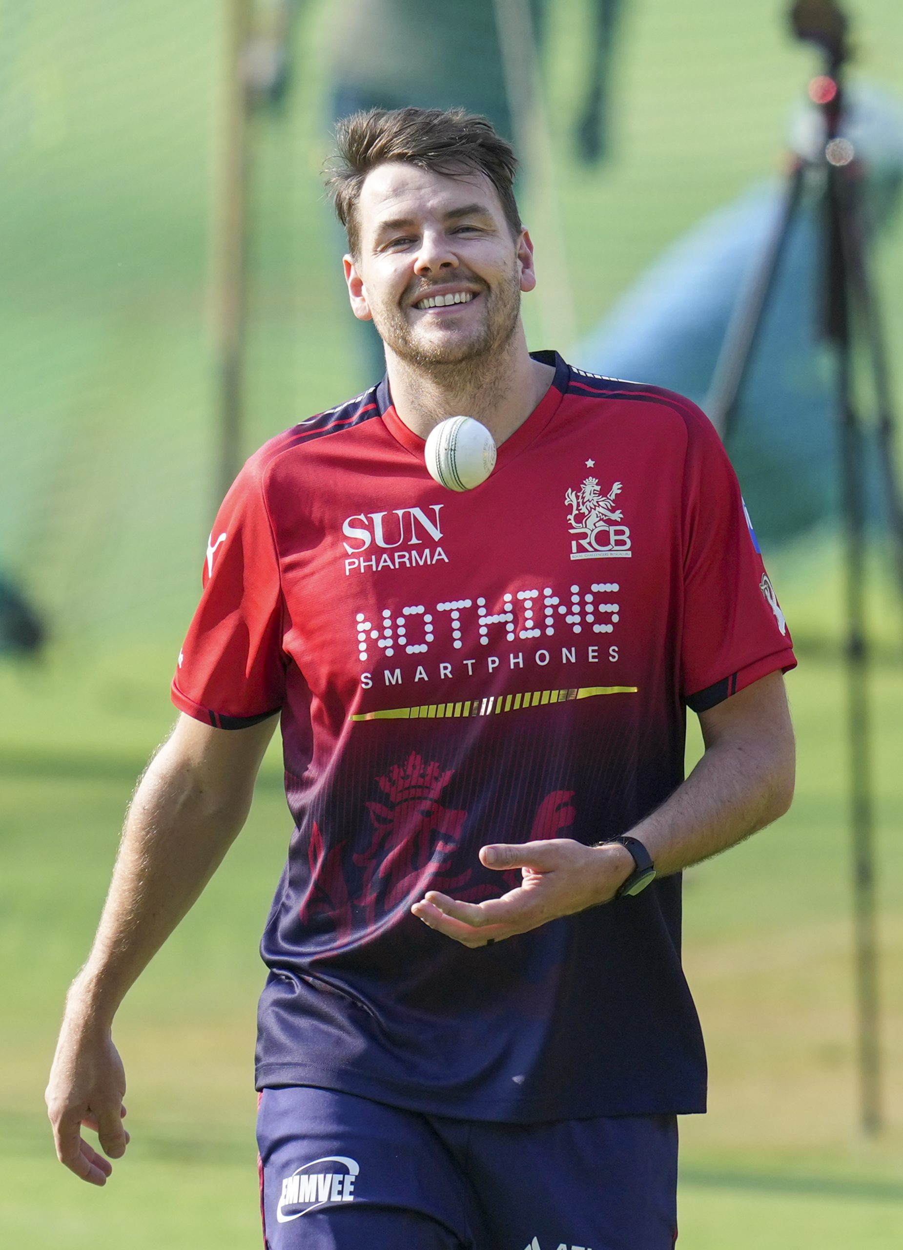Bengaluru: Royal Challengers Bengaluru�s Jacob Duffy during a practice session ahead of the Indian Premier League (IPL) 2026 cricket match against Sunrisers Hyderabad, at M. Chinnaswamy Stadium in Bengaluru, Thursday, March 26, 2026. (PTI Photo/Shailendra Bhojak) (PTI03_26_2026_000374B)