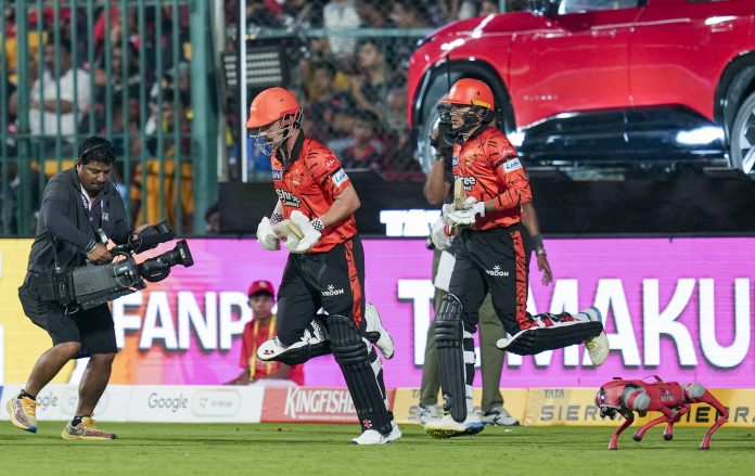 Bengaluru: Sunrisers Hyderabad’s Abhishek Sharma and Travis Head arrive on field during an Indian Premier League (IPL) 2026 T20 cricket match between Royal Challengers Bengaluru and Sunrisers Hyderabad, at the M Chinnaswamy Stadium, in Bengaluru, Karnataka, Saturday, March 28, 2026. (PTI Photo/Shailendra Bhojak) (PTI03_28_2026_000227B)