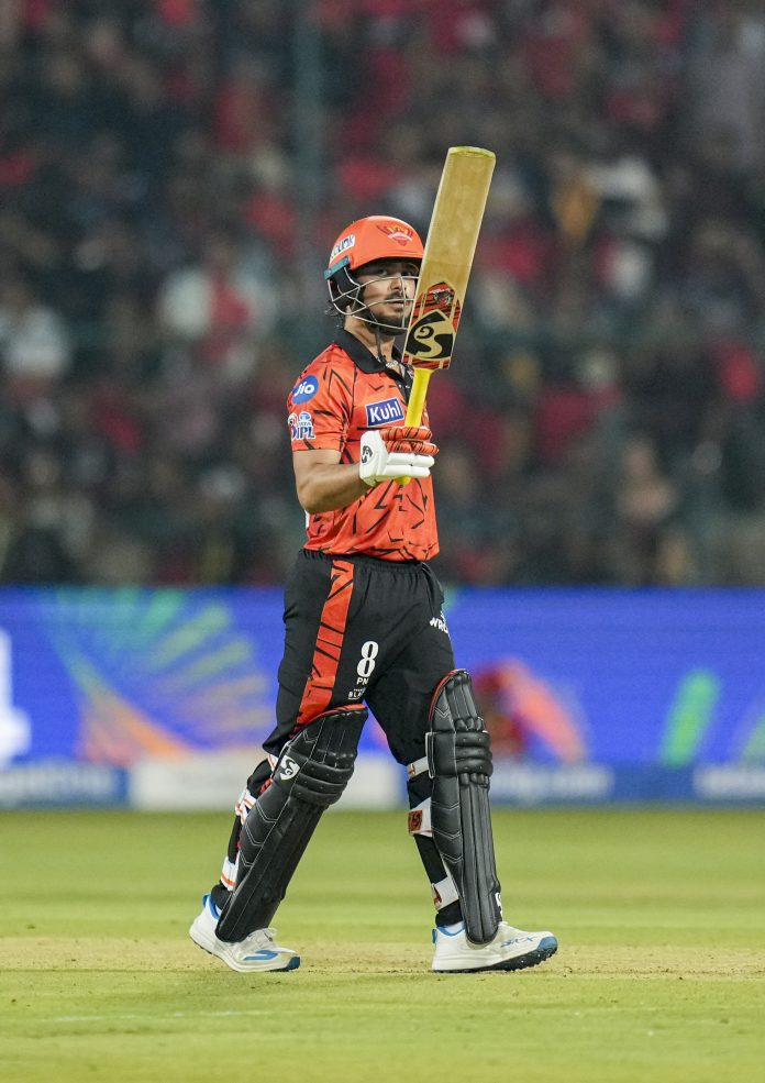 Bengaluru: Sunrisers Hyderabad's captain Ishan Kishan celebrates his half century during an Indian Premier League (IPL) 2026 T20 cricket match between Royal Challengers Bengaluru and Sunrisers Hyderabad, at the M Chinnaswamy Stadium, in Bengaluru, Karnataka, Saturday, March 28, 2026. (PTI Photo/Shailendra Bhojak) (PTI03_28_2026_000268B)