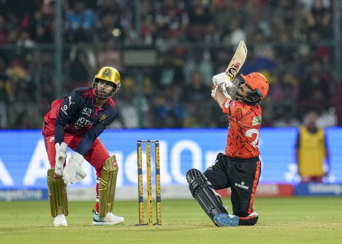 Bengaluru: Sunrisers Hyderabad’s captain Ishan Kishan plays a shot during an Indian Premier League (IPL) 2026 T20 cricket match between Royal Challengers Bengaluru and Sunrisers Hyderabad, at the M Chinnaswamy Stadium, in Bengaluru, Karnataka, Saturday, March 28, 2026. (PTI Photo/Shailendra Bhojak) (PTI03_28_2026_000281B)