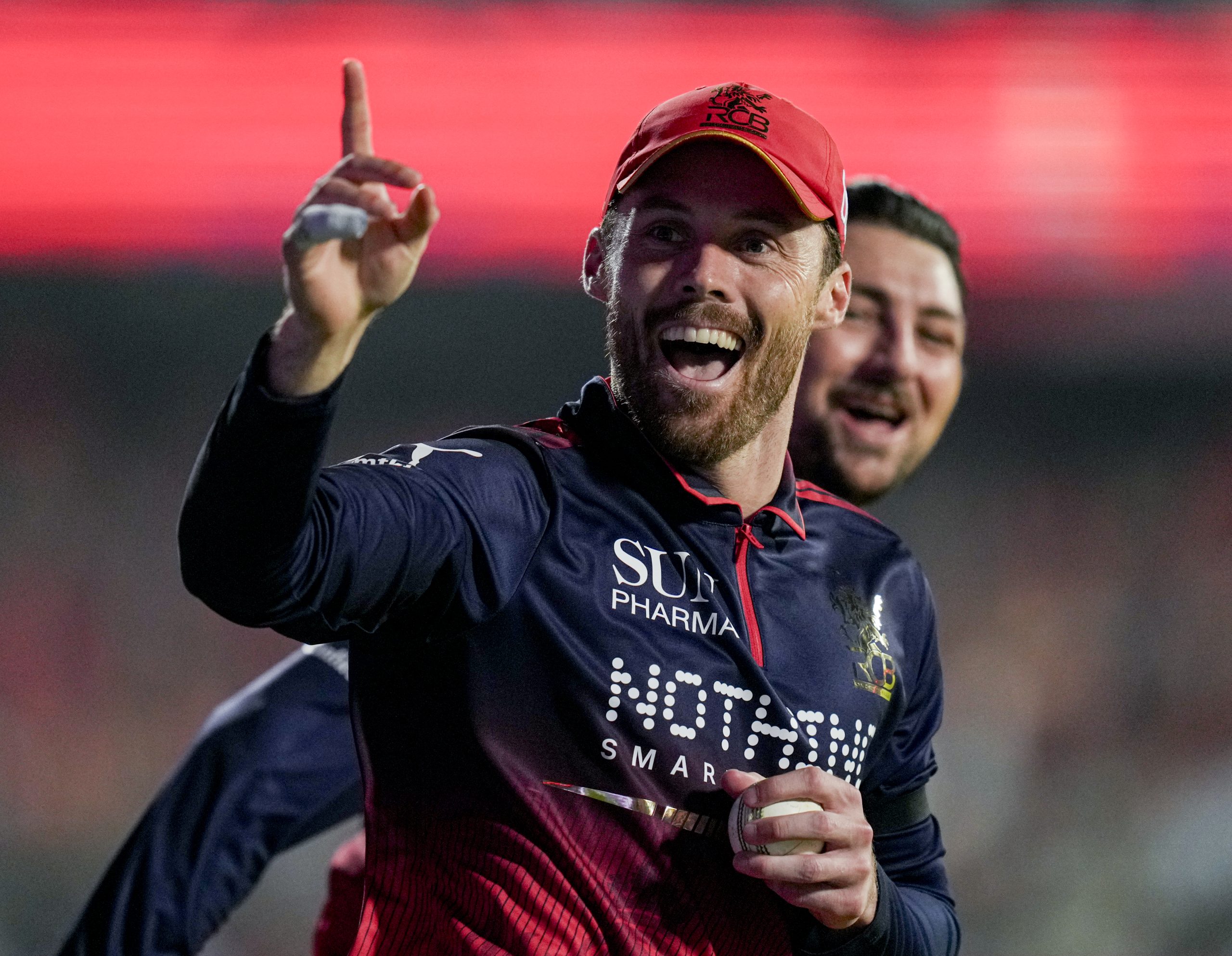Bengaluru: Royal Challengers Bengaluru’s Phil Salt, front, celebrates with Tim David after taking the catch of Sunrisers Hyderabad’s captain Ishan Kishan during an Indian Premier League (IPL) 2026 T20 cricket match between Royal Challengers Bengaluru and Sunrisers Hyderabad, at the M Chinnaswamy Stadium, in Bengaluru, Karnataka, Saturday, March 28, 2026. (PTI Photo/Shailendra Bhojak) (PTI03_28_2026_000310B)