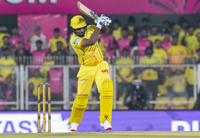 Guwahati: Chennai Super Kings’ Sanju Samson plays a shot during an Indian Premier League (IPL) 2026 T20 cricket match between Rajasthan Royals and Chennai Super Kings, at ACA Stadium, Barsapara, in Guwahati, Assam, Monday, March 30, 2026. (PTI Photo/Swapan Mahapatra) (PTI03_30_2026_000341B) *** Local Caption ***
