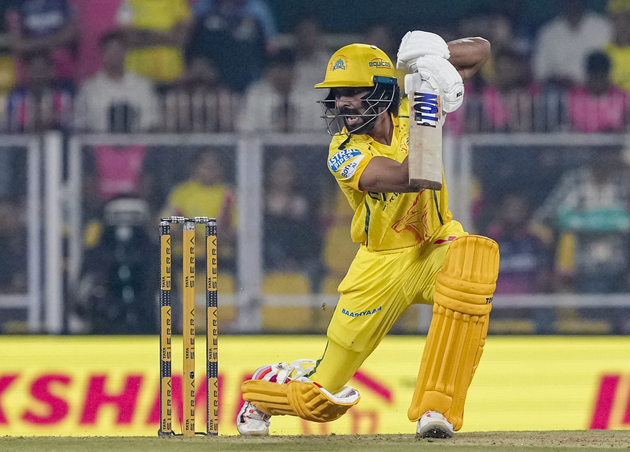 Guwahati: Chennai Super Kings’ captain Ruturaj Gaikwad plays a shot during an Indian Premier League (IPL) 2026 T20 cricket match between Rajasthan Royals and Chennai Super Kings, at ACA Stadium, Barsapara, in Guwahati, Assam, Monday, March 30, 2026. (PTI Photo/Swapan Mahapatra) (PTI03_30_2026_000360B) *** Local Caption ***