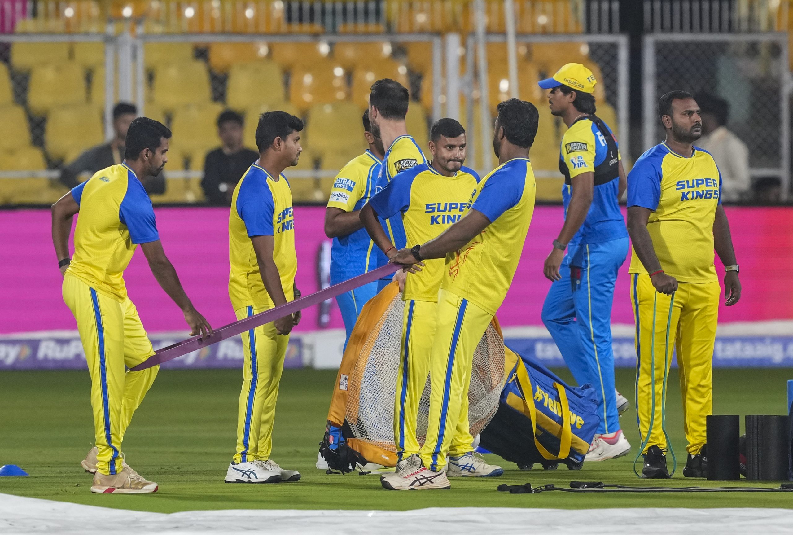 Guwahati: Chennai Super Kings’ players during a practice session ahead of an Indian Premier League (IPL) 2026 T20 cricket match between Rajasthan Royals and Chennai Super Kings, at ACA Stadium, Barsapara, in Guwahati, Assam, Sunday, March 29, 2026. (PTI Photo/Swapan Mahapatra) (PTI03_29_2026_000369B)
