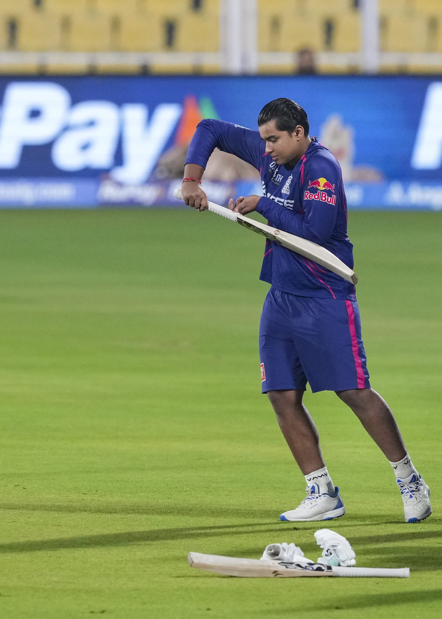 Guwahati: Rajasthan Royals' Vaibhav Sooryavanshi during a practice session ahead of an Indian Premier League (IPL) 2026 T20 cricket match between Rajasthan Royals and Chennai Super Kings, at ACA Stadium, Barsapara, in Guwahati, Assam, Sunday, March 29, 2026. (PTI Photo/Swapan Mahapatra) (PTI03_29_2026_000318B)