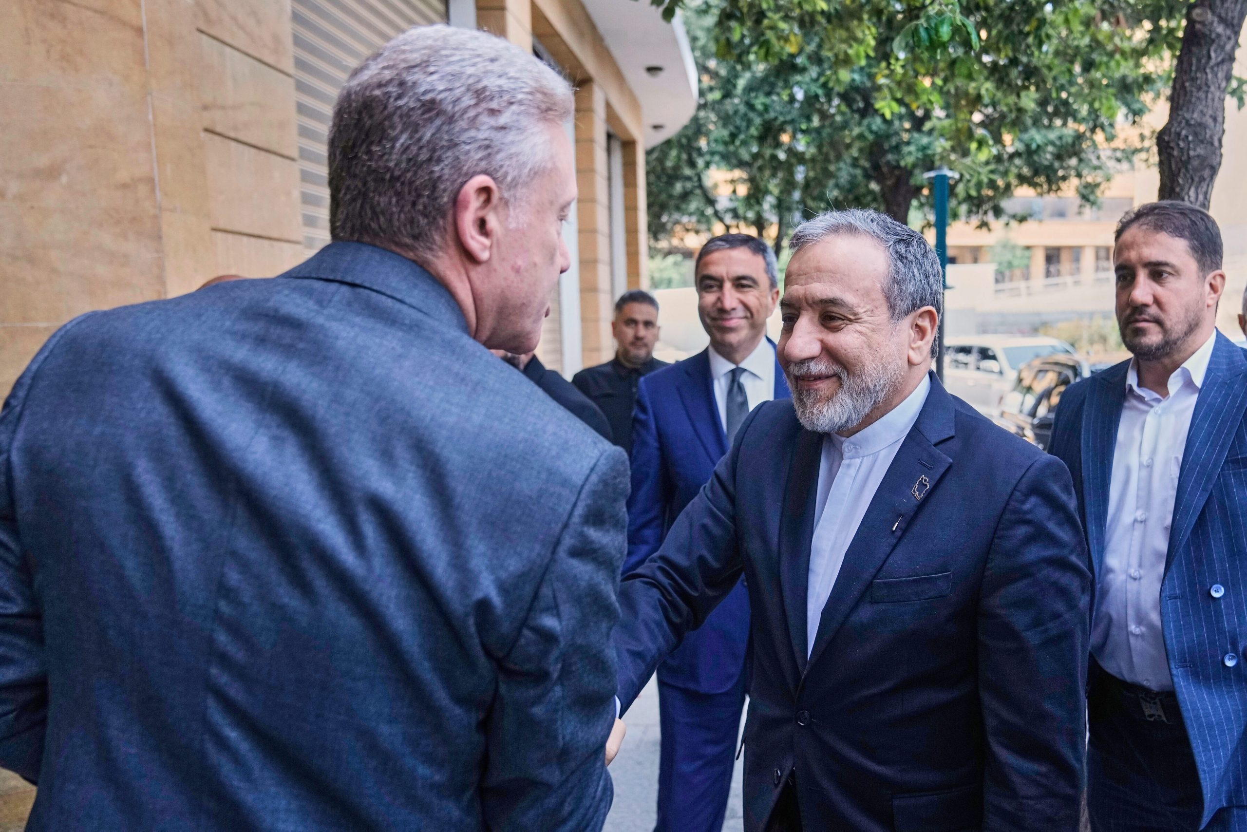 Lebanese Foreign Minister Youssef Rajji, left, receives his Iranian counterpart Abbas Araghchi, center, in Beirut, Lebanon, Tuesday, June 3, 2025. AP/PTI(AP06_03_2025_000062B)