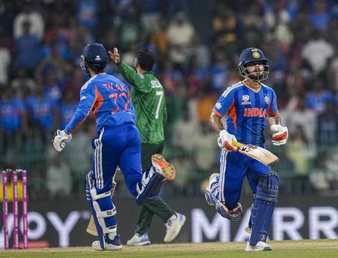 Colombo: India's Tilak Varma, left, and Ishan Kishan run between the wickets during an ICC Men's T20 World Cup 2026 cricket match between India and Pakistan, at R Premadasa Stadium, in Colombo, Sri Lanka, Sunday, Feb. 15, 2026. (PTI Photo/R Senthilkumar) (PTI02_15_2026_000971B)