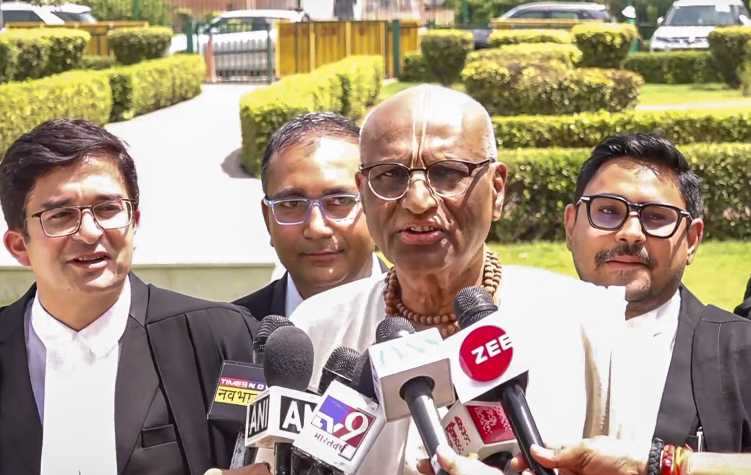 **EDS: SCREENSHOT VIA PTI VIDEOS** New Delhi: ISKCON Bangalore Chairman Madhu Pandit Dasa addresses the media regarding the Supreme Court's verdict that the Hare Krishna temple in Bengaluru belongs to the ISKCON Society in the city, in New Delhi, Friday, May 16, 2025. (PTI Photo) (PTI05_16_2025_000044B)