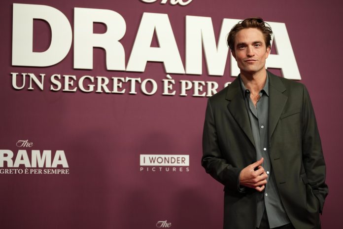 Actor Robert Pattinson poses for photographers as he arrives for the Italian premiere of the movie “The Drama,” in Rome, Thursday, March 26, 2026. AP/PTI(AP03_27_2026_000007B)