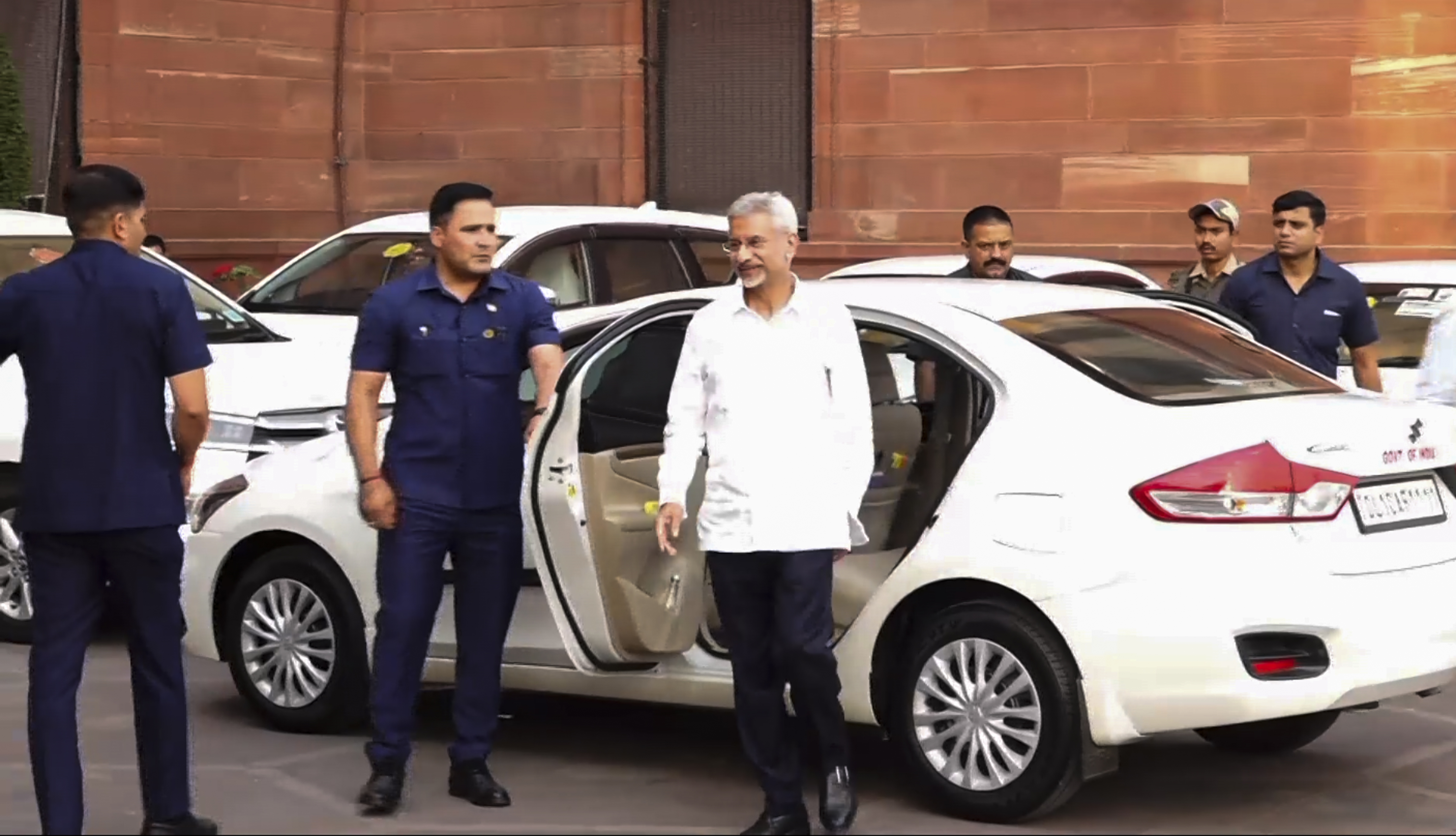 **EDS: SCREENGRAB VIA PTI VIDEOS** New Delhi: Union External Affairs Minister S Jaishankar arrives at the Ministry of Home Affairs, in New Delhi, Wednesday, April 9, 2025. (PTI Photo) (PTI04_09_2025_000618B)