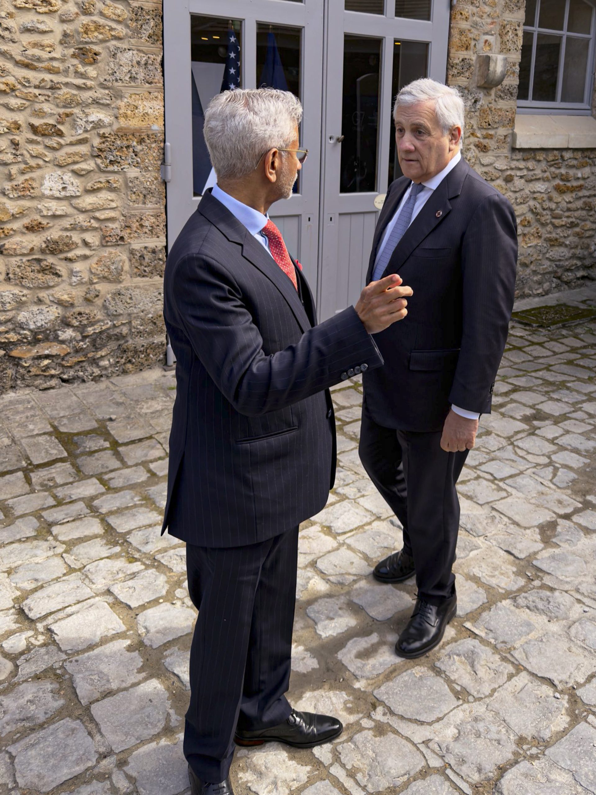 **EDS: THIRD PARTY IMAGE** In this image posted on March 27, 2026, External Affairs Minister S. Jaishankar with Italy Deputy Prime Minister and Minister of Foreign Affairs Antonio Tajani on the sidelines of the G7 Foreign Ministers� Meeting (G7 FMM), in France. (@DrSJaishankar/X via PTI Photo) (PTI03_27_2026_000335B) *** Local Caption ***