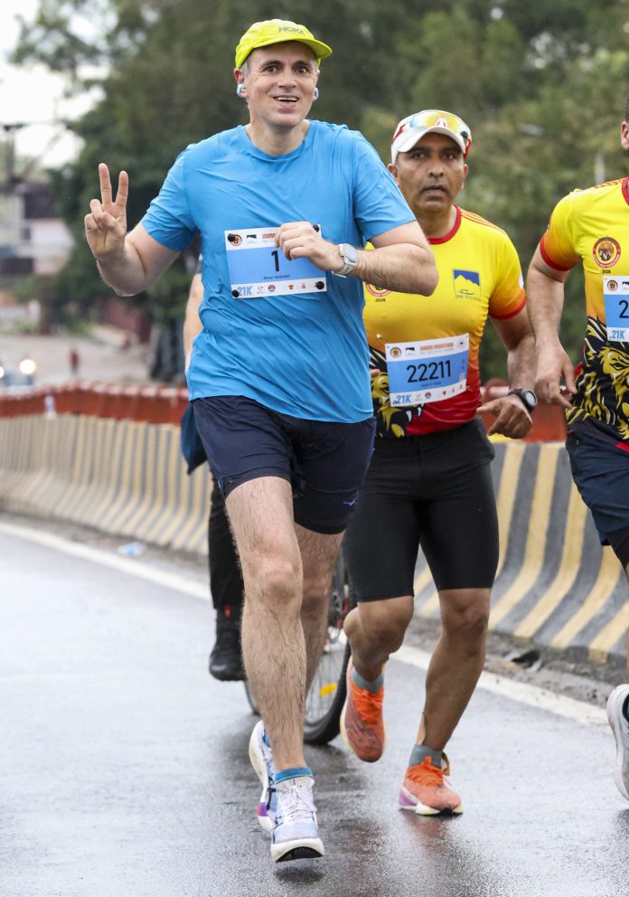 Jammu: Jammu and Kashmir Chief Minister Omar Abdullah participates in the city’s first-ever international marathon, in Jammu, Sunday, March 29, 2026. (PTI Photo) (PTI03_29_2026_000278B)