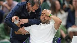 Dimitrov — a three-time major semifinalist, including at Wimbledon in 2014 — then went to the sideline, sat in his chair and was checked by a trainer and doctor. As Dimitrov talked with them, Sinner knelt nearby. After a delay of a few minutes, Dimitrov walked toward the locker room with the medical personnel.