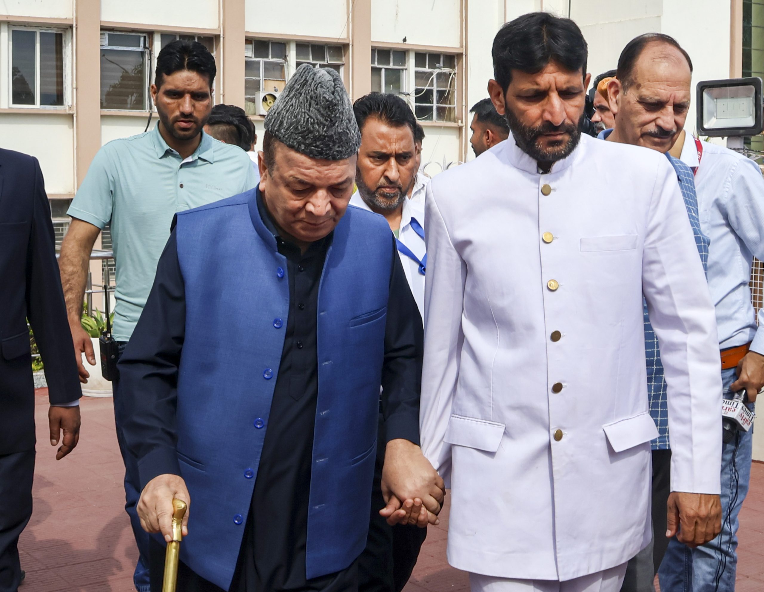 Jammu: Jammu and Kashmir Legislative Assembly Speaker Abdul Rahim Rather, left, during the Budget session of J&K Assembly, in Jammu, Wednesday, April 1, 2026. (PTI Photo)