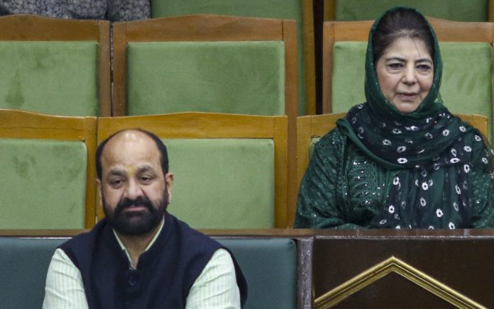 Jammu: Jammu and Kashmir Peoples Democratic Party (PDP) president Mehbooba Mufti, right, during the budget session of the J&K Assembly, in Jammu, Monday, March 30, 2026. (PTI Photo)(PTI03_30_2026_000019B)