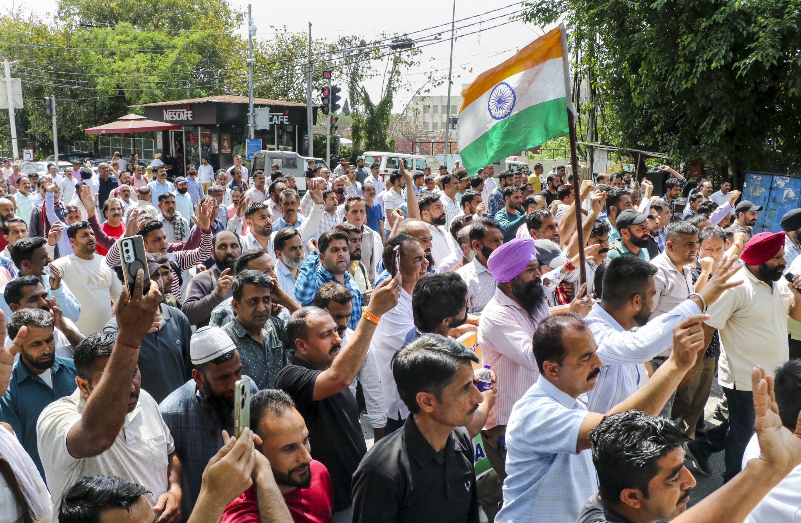 Jammu: Jammu and Kashmir PHE Employees United Front members take out a protest rally against the state government, at Civil Secretariat in Jammu, Wednesday, April 1, 2026. (PTI Photo)/Raman Raina)(PTI04_01_2026_000279B)