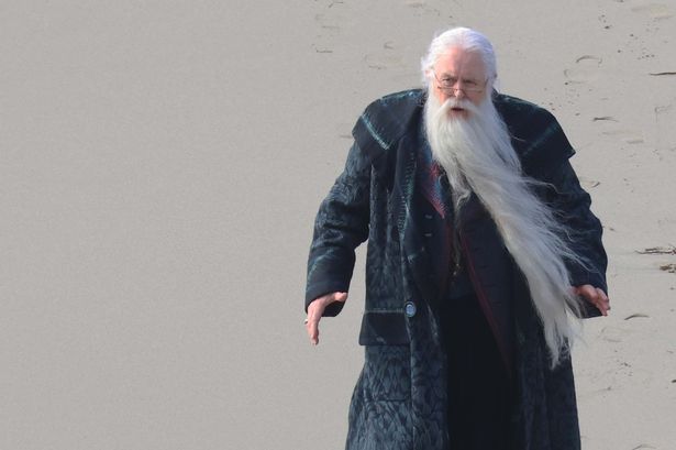 Fan-run accounts on X (formerly Twitter) first shared a series of unofficial photos showing Lithgow standing on a windswept beach set. Clad in a flowing royal blue robe, coordinating blue shirt and trousers, and sturdy leather boots, Lithgow embodies a more austere, yet regal, Dumbledore. His long, silvery-white beard trails nearly to his knees, complemented by slender half-frame spectacles that perch on the bridge of his nose. The robes, long a hallmark of the character, feature subtle embroidery along the cuffs and hem, suggesting a fresh costume design approach compared to previous film adaptations.