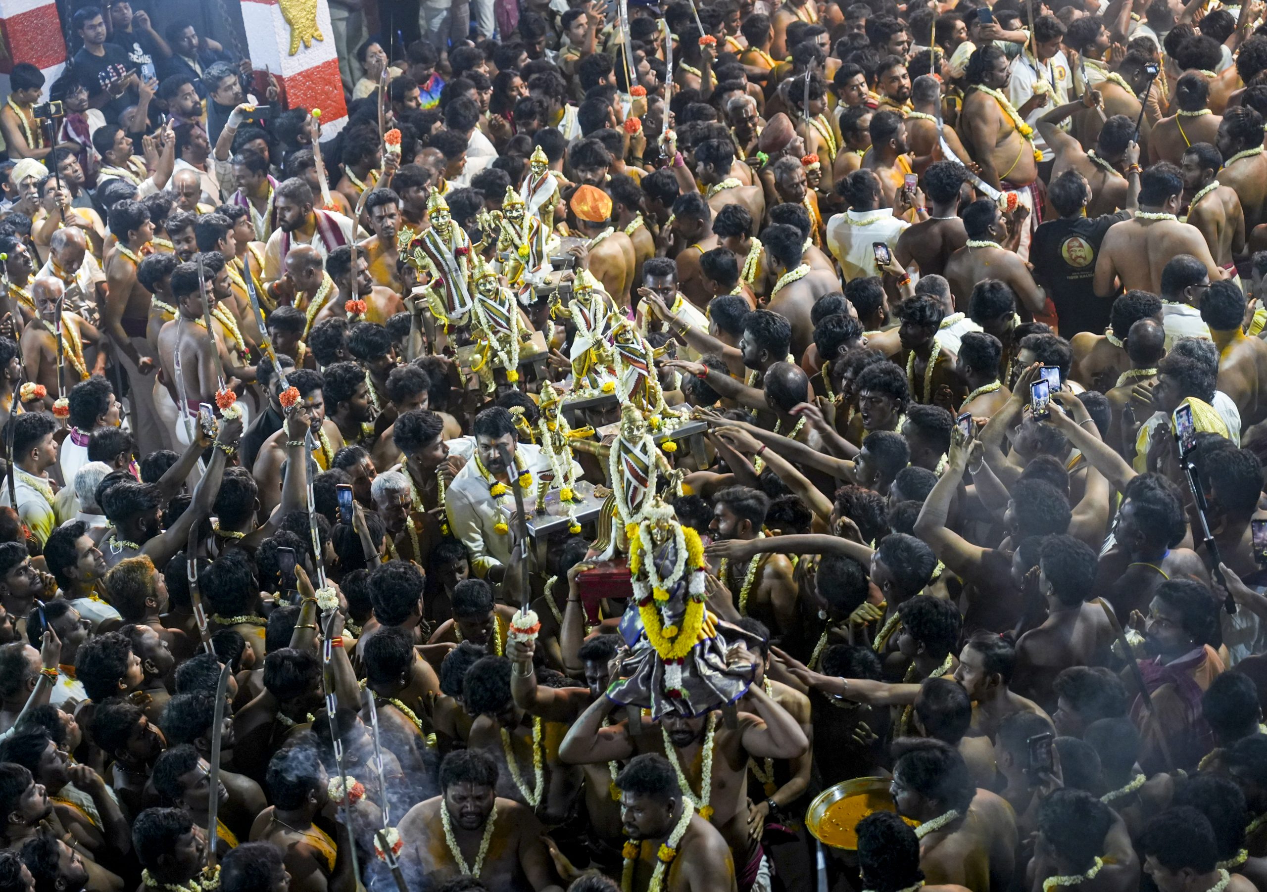 Bengaluru: ‘Veerakumars’ holding swords, perform rituals during the ‘Bengaluru Karaga’ festival, at Shri Dharmaraya Swamy Temple, in Bengaluru, Karnataka, Thursday, April 2, 2026. (PTI Photo/Shailendra Bhojak)(PTI04_02_2026_000090B)
