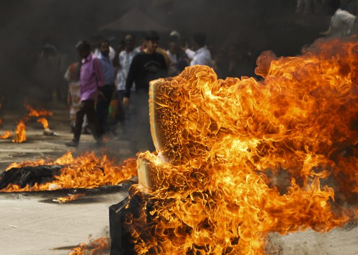 Bengaluru: People light camphor on the Dharmaraya temple street ahead of Karaga festival procession in Bengaluru, Karnataka, Saturday, April 12, 2025. The Karaga procession will start from the temple late night and end on Sunday morning. (PTI Photo) (PTI04_12_2025_000241B)
