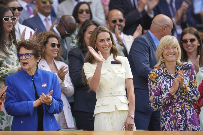 Kate, the wife of Prince William, is the patron of the All England Club and usually attends the women’s and men’s singles finals. On Saturday, she gave champion Iga Swiatek her prize after a 6-0, 6-0 victory in the final and offered consoling words to runner-up Amanda Anisimova.