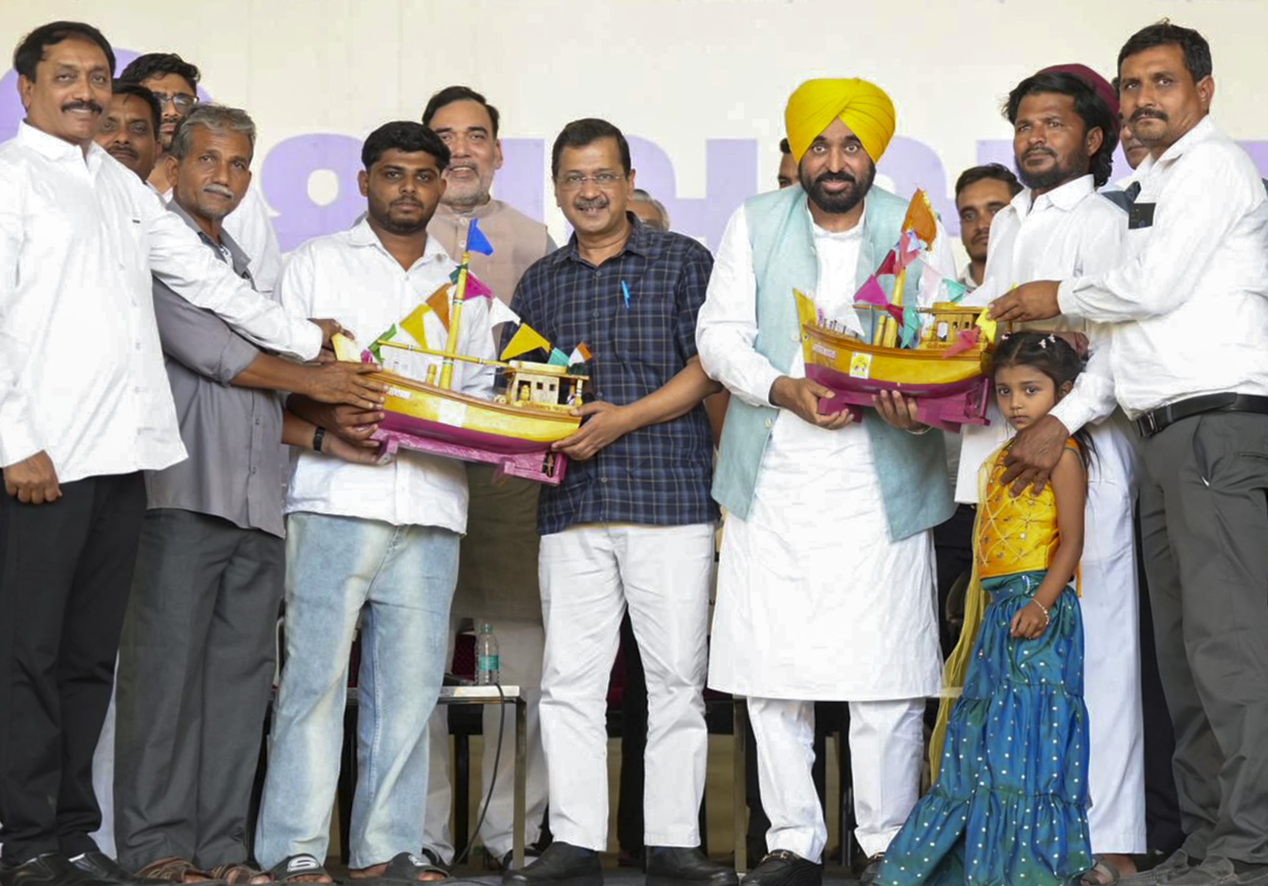 Kejriwal, Mann at a public meet in Gujarat