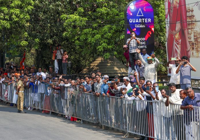 **EDS: THIRD PARTY IMAGE** In this image received on March 29, 2026, People gather as Prime Minister Narendra Modi, unseen, arrives for a public meeting, in Palakkad, Kerala. (narendramodi.in via PTI Photo)(PTI03_29_2026_000211B)