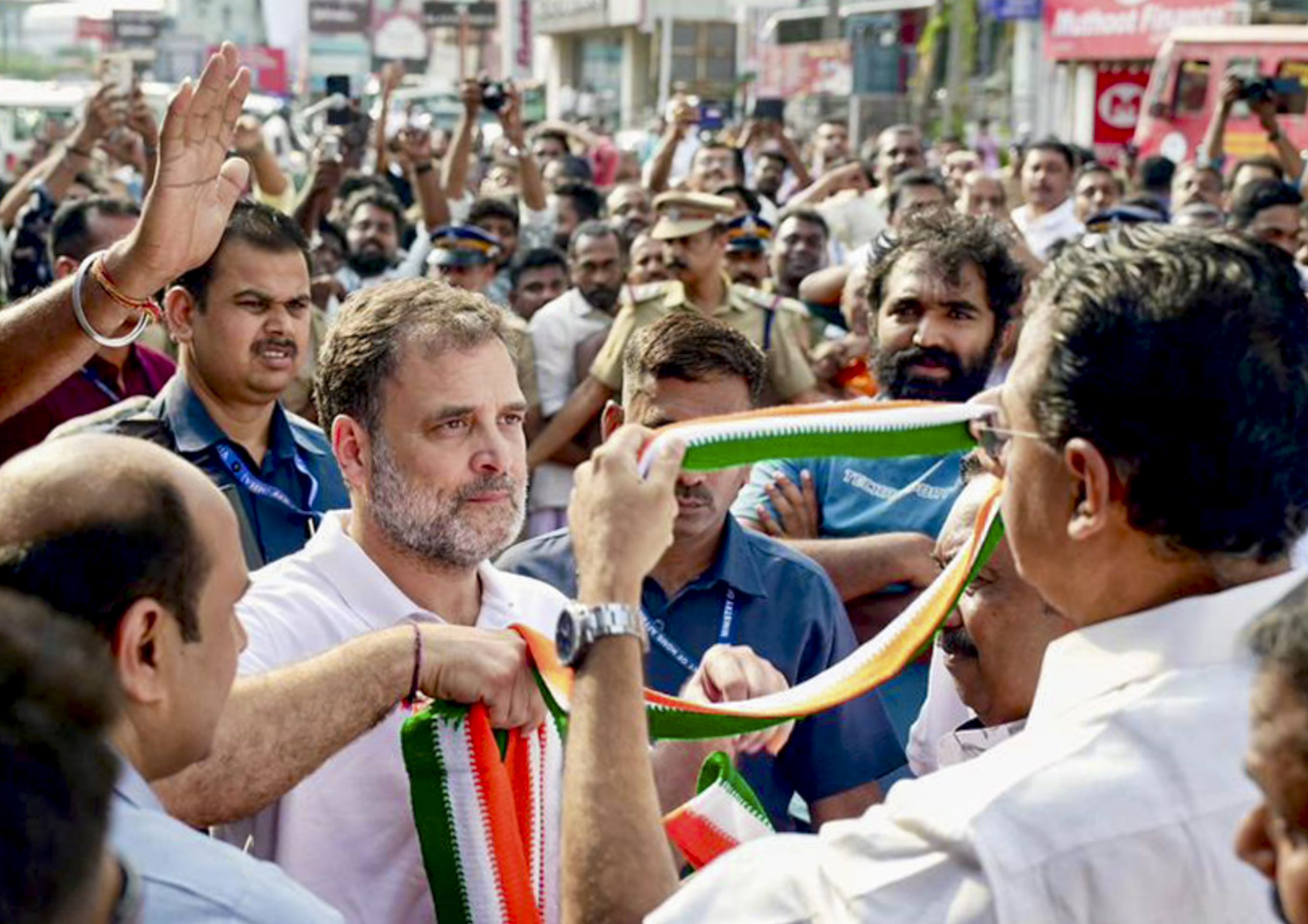 **EDS: THIRD PARTY IMAGE** In this image posted on March 30, 2026, Congress leader Rahul Gandhi being welcomed by party leaders upon his arrival to address a public meeting in support of UDF candidates for the upcoming Kerala Assembly elections, at Kanjikuzhi Junction, in Kottayam district. (@INCIndia/X via PTI Photo) (PTI03_30_2026_000299B)