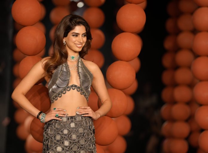 New Delhi: Actor Khushi Kapoor walks the ramp showcasing a creation by fashion designer Rimzim Dadu during the FDCI India Couture Week 2025, in New Delhi, Tuesday, July 29, 2025. (PTI Photo/Karma Bhutia)(PTI07_29_2025_000655B)