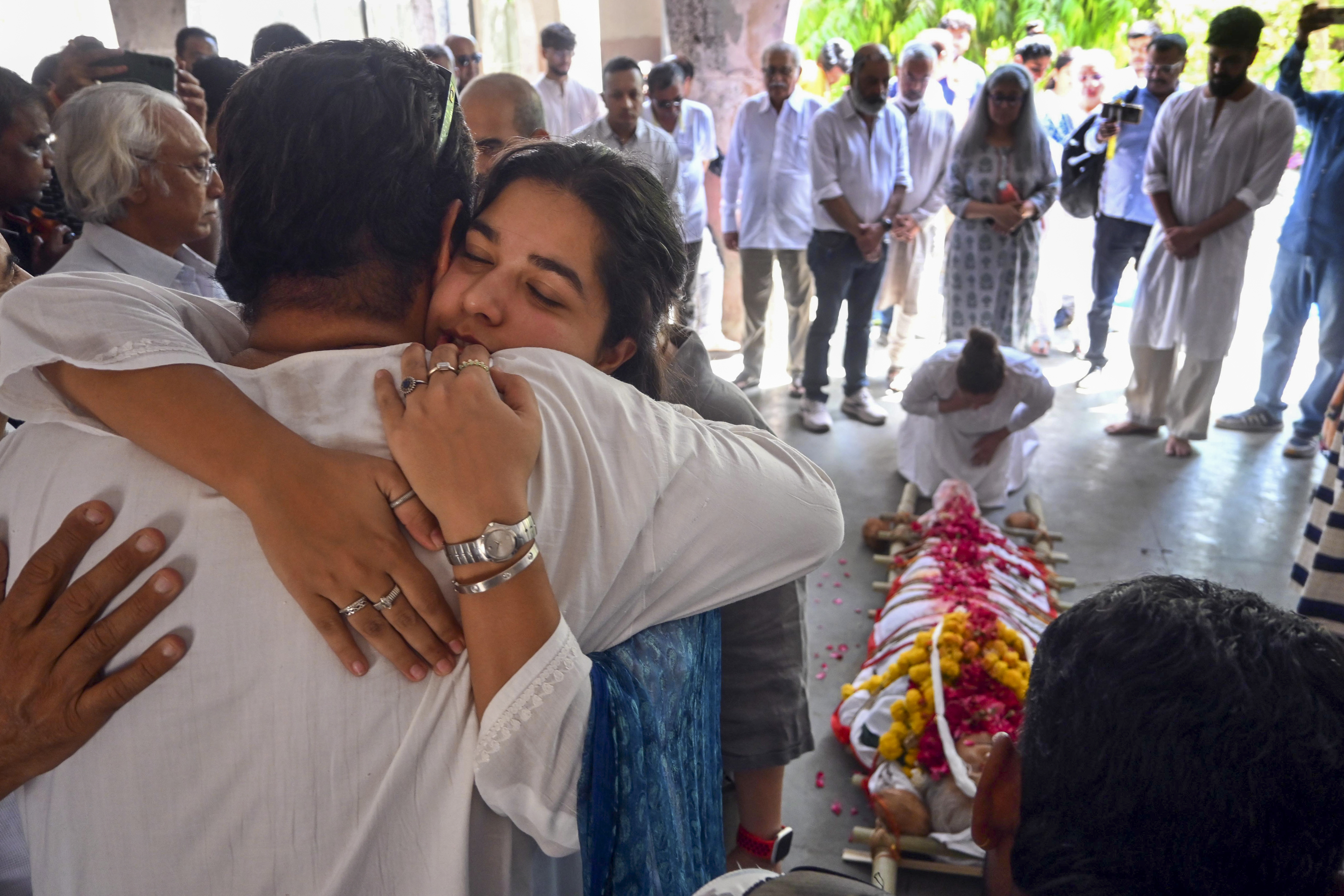 Ahmedabad: Relatives and artistes attend the funeral of Kathak legend Kumudini Lakhia, who passed away at the age of 95, in Ahmedabad, Saturday, April 12, 2025. (PTI Photo) (PTI04_12_2025_000275B)