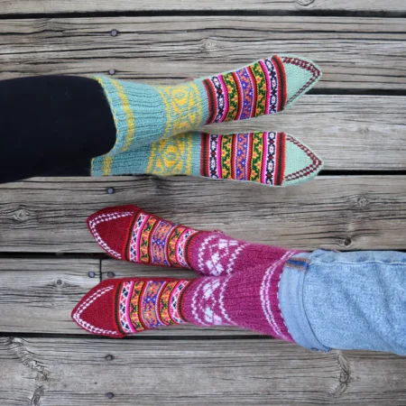 Lahauli socks and gloves are meticulously handcrafted using wool sheared from local sheep. The process involves knitting in sections with four double-pointed needles, creating vibrant patterns known as “dashi.” These patterns incorporate up to eight colors and feature motifs like Bumchang, Lari, Zildan, Kuru, Thingma, and Kyog, each holding cultural significance. The result is not just a garment but a tapestry of Lahauli heritage.